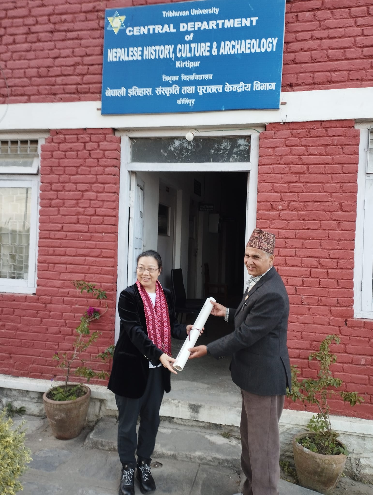 २०८१ मङ्सिर २६ गते चीनको The Yunan research institute of culture and history तथा Yunan academy of calligraphy and painting का पदाधिकारीहरू Zhou Ling. Hu Yan. Fan Yu, Ma Hongiun, र Yang Jin सँग यस नेपाली इतिहास संस्कृति तथा पुरातत्व केन्द्रीय विभागका सदस्यहरूको विभागकै कार्यकक्षमा शिष्टाचार भेट सम्पन्न भयो । दुई संस्थाहरूबीच सम्पन्न अध्ययन अनुसन्धानका अनुभवहरूको आदानप्रदान भयो । भविष्यमा सहकार्यका विभिन्न आयामहरूको खोजी गर्ने र दुई संस्थाबीच लामो र दिगो सम्बन्ध कायम गर्ने विषयमा गम्भीर छलफल सम्पन्न भयो। चिनियाँ अतिथिहरूको नेपाल बसाई सुखद रहोस् । विभागसँग प्राज्ञिक सम्बन्धको प्रस्ताव गर्नुभएकोमा चिनिया अतिथिहरूप्रति हार्दिक आभार र धन्यवाद।
