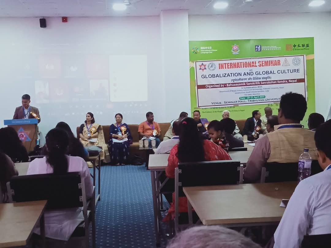 सन् २०२५ अप्रिल २० र २१ तदअनुसार विक्रम सम्वत २०८२ वैशाख ७ र ८ गते यस नेपाली इतिहास संस्कृति तथा पुरातत्त्व केन्द्रीय विभागको सहकार्यमा नेपाल, भारत तथा मोरिसस देशका विभिन्न विश्वविद्यालयका प्रतिनिधि मण्डल सहभागी भएको एक भव्य अन्तर्राष्ट्रिय सम्मेलन त्रिभुवन विश्वविद्यालयको केन्द्रीय पुस्तकालयको सभा कक्षमा सम्पन्न भयो। भूमण्डलीकरण र वैश्विक संस्कृति विषयमा केन्द्रित यस अन्तर्राष्ट्रिय सम्मेलनमा बसाईसराई आप्रवासन र यसका कारणले मौलिक संस्कृति संरक्षणमा आएको चुनौती विषयमा कार्यपत्रहरू प्रस्तुत गरिए र ती कार्यपत्रमाथि गहन छलफल गरियो। सांस्कृतिक अध्ययन अनुसन्धानका अनुभवहरू आदानप्रदान गरियो। यस अन्तर्राष्ट्रिय सम्मेलन सफल पार्न सहयोग गर्नुहुने सम्बन्धित सबै संघसंस्था, कार्यपत्र प्रस्तोता टिप्पणीकर्ता र सम्पूर्ण सहभागीहरुलाई हार्दिक धन्यवाद ।